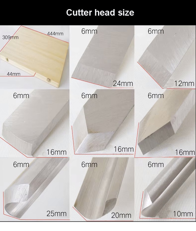 تعداد قطعات: ۸ عدد چاقوی منبتکاری در اشکال مختلف (شفره، کندهکاری، چاک دادن، قاشقی، V شکل و ...)