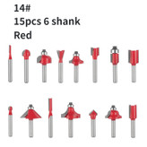 ست 15 عددی تیغه اور فرز شفت 6 میلی متر قرمز با جعبه چوبی