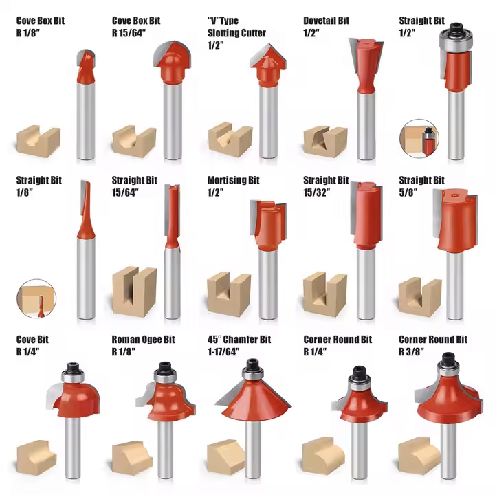 ست 15 عددی تیغه اور فرز شفت 6 میلی متر قرمز با جعبه چوبی