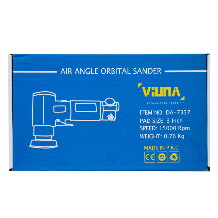 سنباده لرزان بادی سرکج VIUNA مدل DA-7337 با زاویه 90 درجه، محصول با کیفیت کشور چین می باشد. این محصول شامل یک عدد پد 3 اینچ (7.5 سانتیمتری) اضافه ميباشد. سرعت آن 15000 دور در دقیقه است. از خصوصیات سنباده سركج ويونا می توان به خوش دست بودن، ابعاد کوچک، قابلیت استفاده در سطوح کوچک و ظریف، کیفیت بالا، موجود بودن تمام قطعات یدکی و خدمات پس از فروش با قیمت مناسب و ارزان اشاره نمود. سنباده لرزان ویونا به همراه یک عدد دنباله و یک آچار ارائه می گردد.