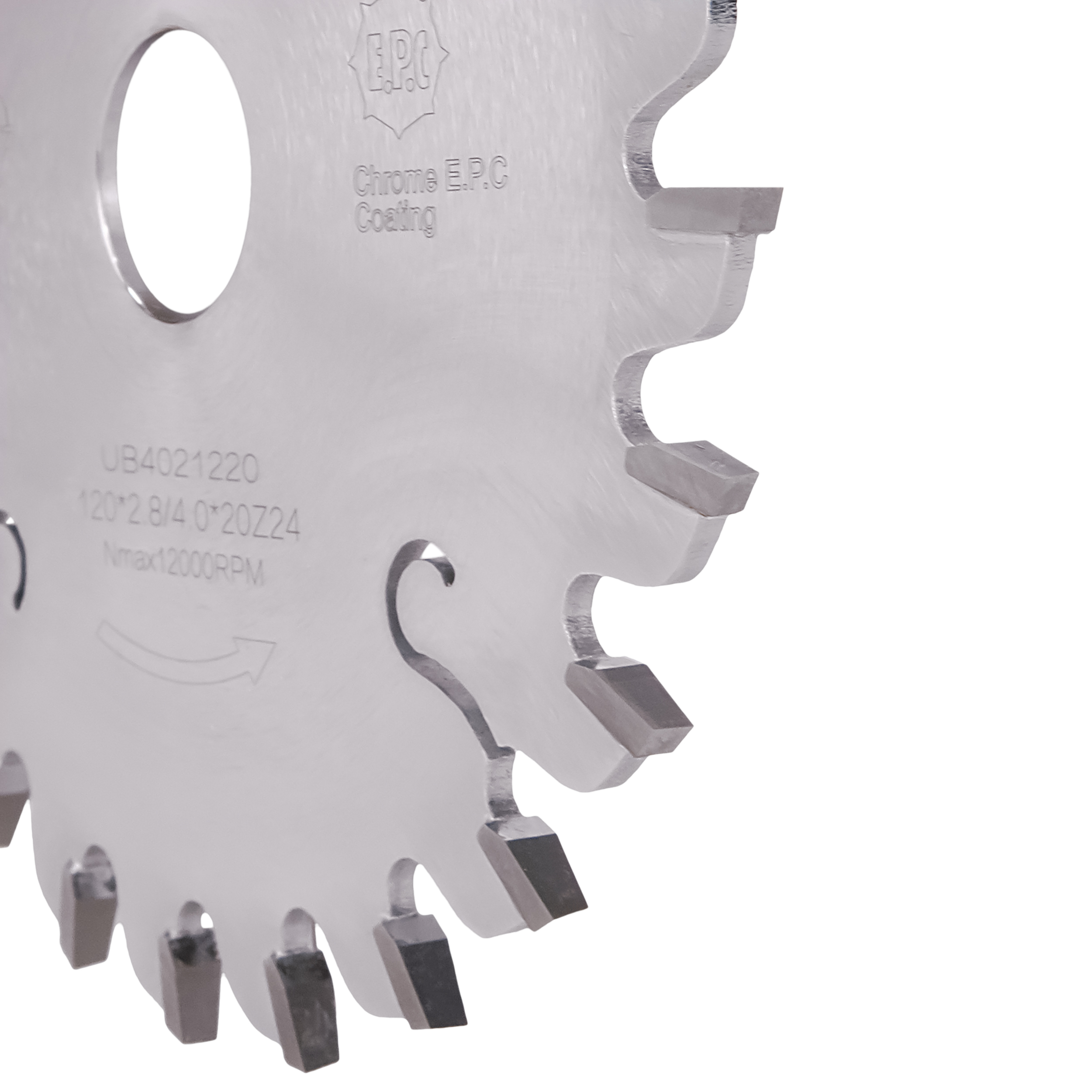 قطر تیغه (میلیمتر)120سایز شفت (میلی متر)20تعداد دندانه24ضخامت الماسه2.8-4.0ضخامت بدنه (میلیمتر)2.2زاویه الماسه5°