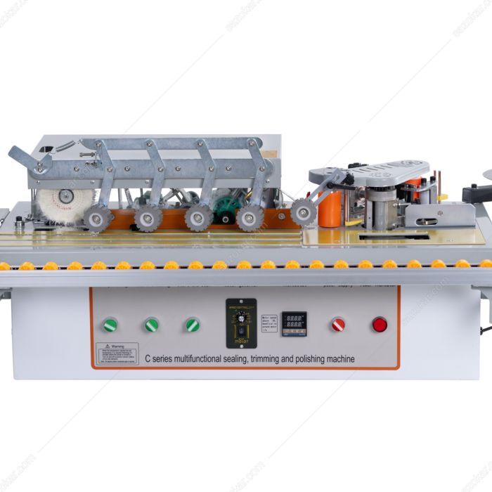 نحوه کار لبه چسبان حرفه ای رومیزی رونیا مدل ERS10 به این صورت است که قطعه کار پس از ورود به داخل دستگاه، بهوسیله یک غلتک، لبههای آن چسب خورده و بعد از این مرحله بهوسیله یک غلتک دیگر، نوار به آن متصل میشود. این نوار بعد از حرارت دیدن در مراحل و یا ایستگاههای بعدی تراز شده و در انتها با استفاده از یک یا چند فرز لبههای آن پرداخت شده و در نهایت پولیش میشود. این ابزار دارای قابلیت تنظیم متراژ است که کاربر بسته به اندازه قطعه کاری خود آن را تعیین کرده و دستگاه بعد از اتمام متراژ تعیینشده خاموش میشود. برای افزایش کیفیت چسب کاری کاربر میتواند حرارت چسب را مشخص کرده تا سریعتر به قطعه چسبیده و کار با سرعت بالاتری انجام شود. قیمت دستگاه لبه چسبان حرفه ای رومیزی رونیا مدل ERS10 با توجه به قابلیتهای مختلف آن، مناسب و بهصرفه است.
