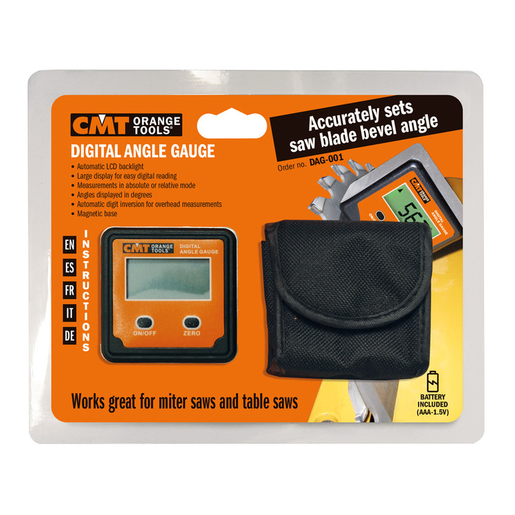 زاویه سنج دیجیتال یک دستگاه ضدآب کوچک است که خوانش دیجیتال بین ± 90 درجه با دقت 0.1 درجه را ارائه می دهد و دارای قابلیت خاموش شدن خودکار پس از 5 دقیقه است. به اندازه کافی کوچک است که بتوان آن را در جیب خود حمل کرد و صفحه نمایش LED به راحتی قابل خواندن است. آهنرباهایی را در پایه برای چسبندگی به هر سطح آهنی برای اندازه گیری دقیق زوایای اره دورکن و فارسی بر. زاویه تیغه اره را با دقت تنظیم می کند. نور پس زمینه LCD خودکار صفحه نمایش بزرگ برای خواندن آسان دیجیتال اندازه گیری در حالت مطلق یا نسبی زوایای نمایش داده شده بر حسب درجه